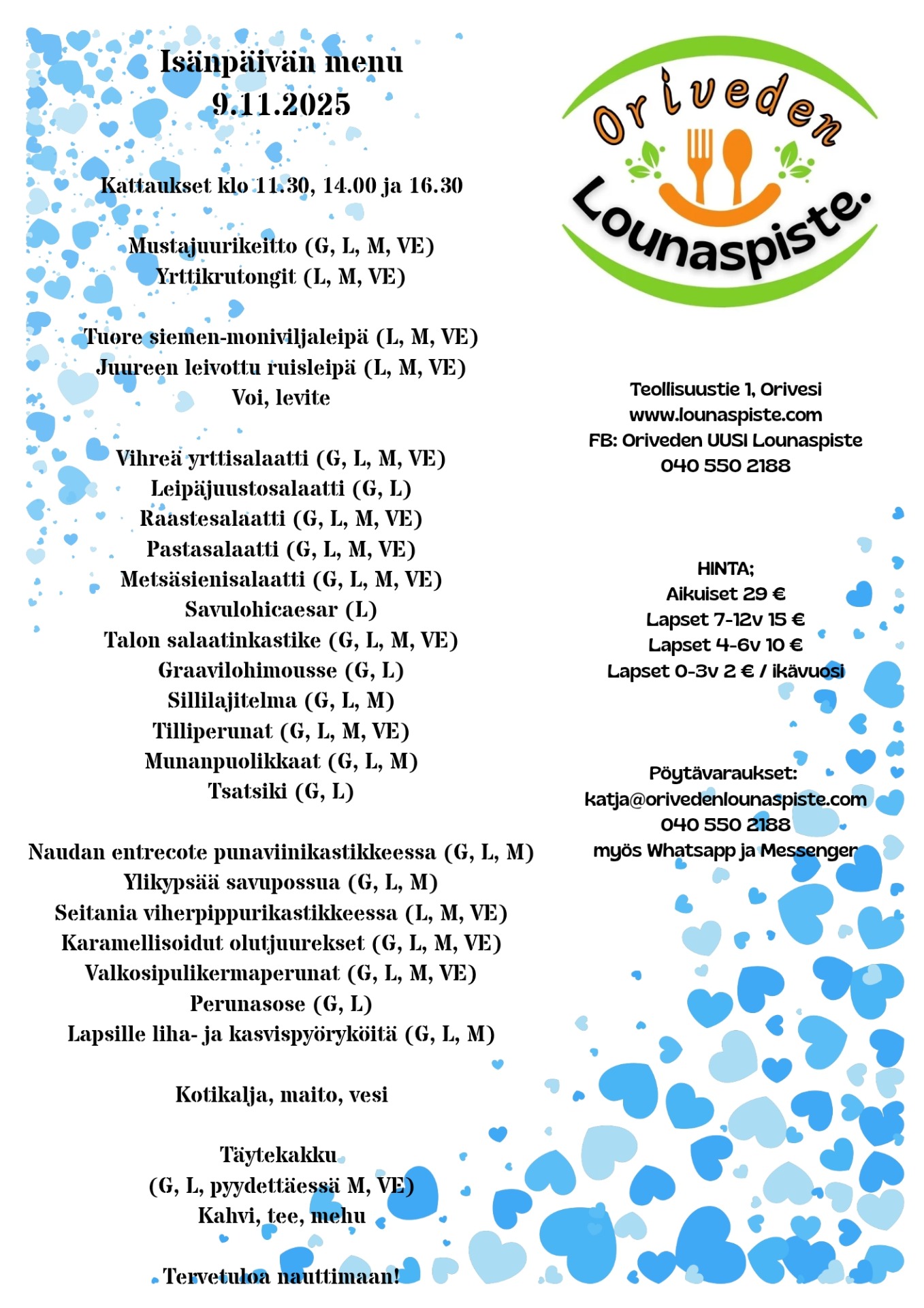 Lounaspiste on avoinna klo 6.30-15, lounas klo 10.30-14.30